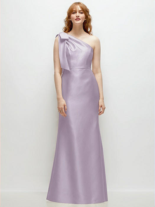Bow One-Shoulder Satin Trumpet Gown in lilac haze