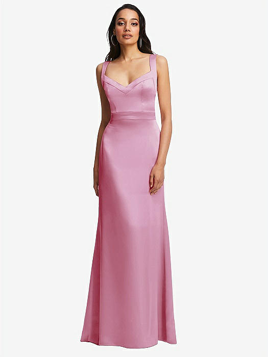 Strapless Basque-Neck Draped Stretch Satin Mermaid Dress with Horsehair Hem in cognac