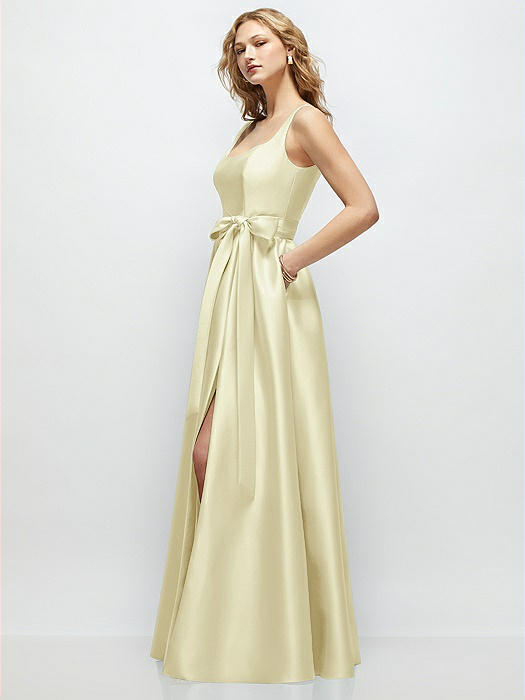 Scoop-Neck Tank Bodice Maxi Dress with Full Skirt in butter yellow