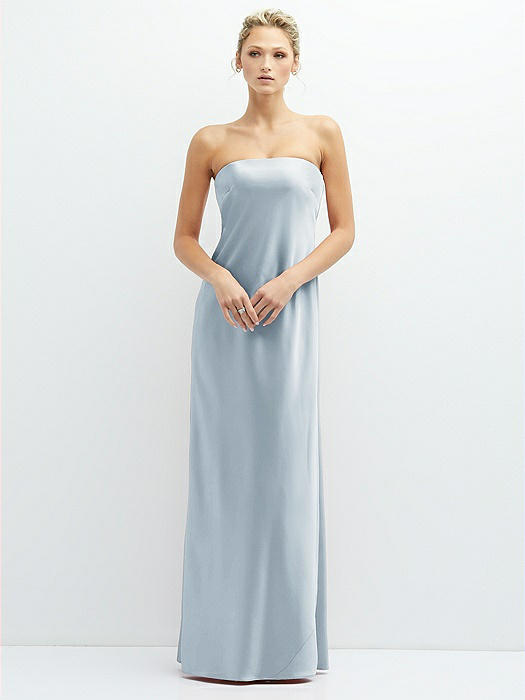 Strapless Maxi Bias Column Dress with Peek-a-Boo Corset Back in mist