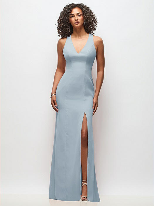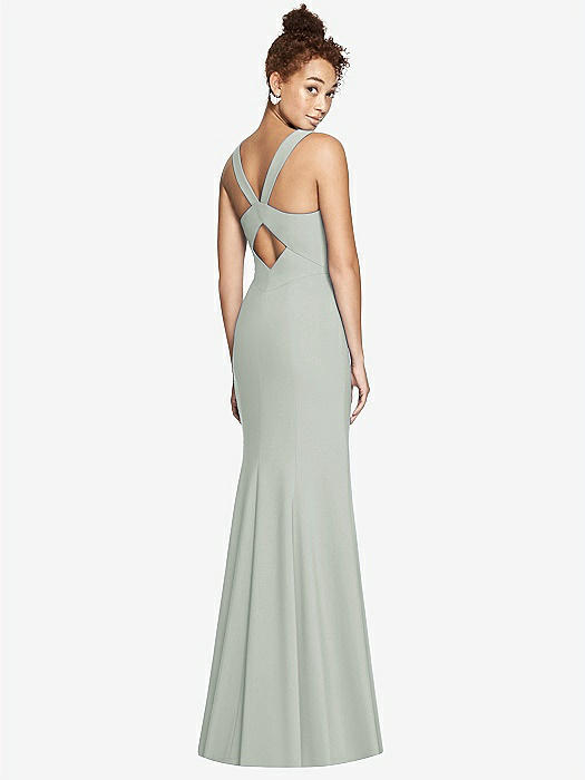 Cowl-Neck Wide Strap Crepe Trumpet Gown with Front Slit in mist