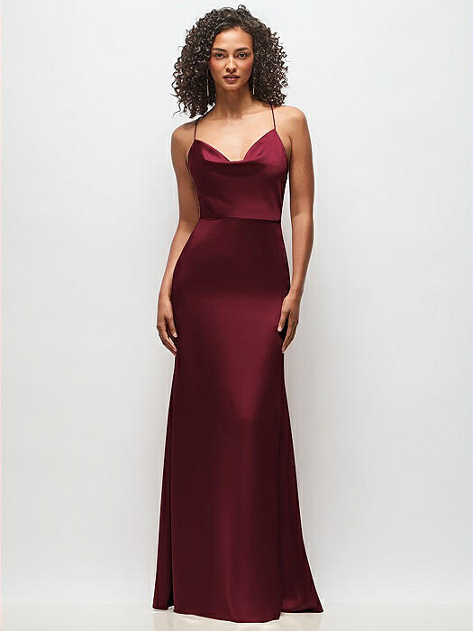 Cowl-Neck A-Line Maxi Dress with Adjustable Straps in cabernet