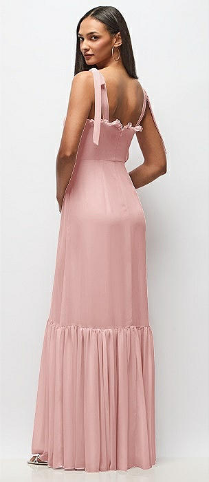Tie-Shoulder Bustier Bodice Ruffle-Hem Maxi Dress in rose