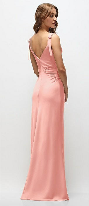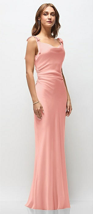 Soft Cowl Neck Ruched Side Satin Bias Maxi Dress with Shoulder Bows in rose