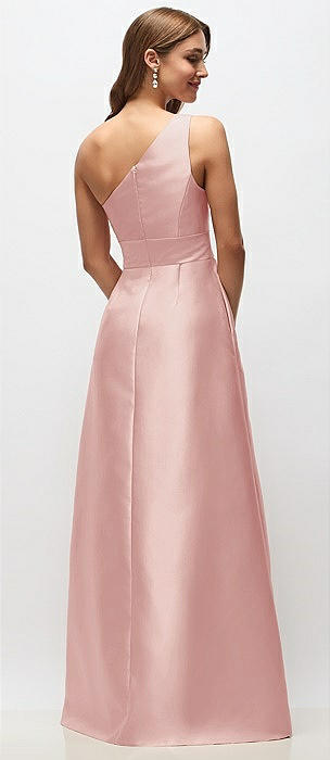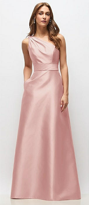 Draped One-Shoulder Satin Maxi Dress with Pockets in rose