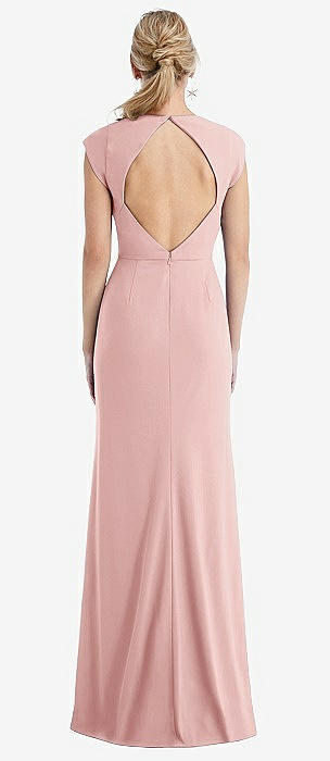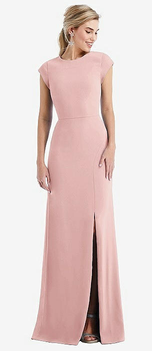 Cap Sleeve Open-Back Trumpet Gown with Front Slit in rose