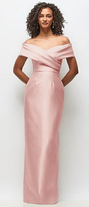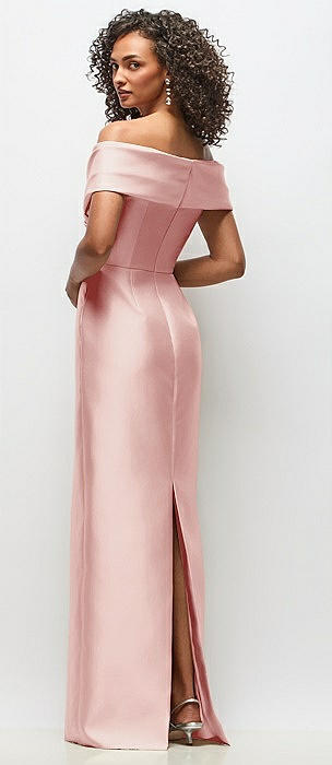 Off-the-Shoulder Cuff Trumpet Gown with Front Slit in rose