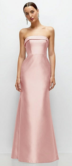 Strapless Cuff Neckline Satin Trumpet Gown in rose
