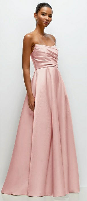Strapless Draped Cat-Eye Satin Maxi Dress with Full Skirt in rose