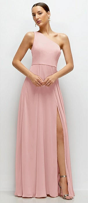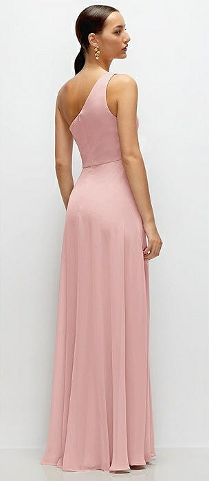 Chiffon One-Shoulder Maxi Dress with Circle Skirt in rose