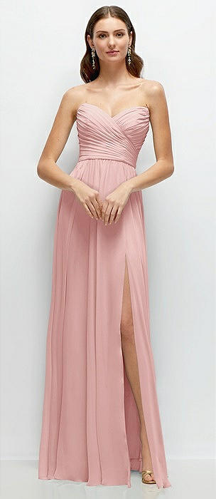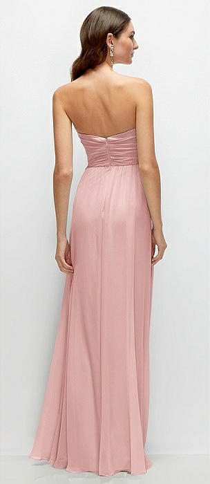 Strapless Pleated Surplice Chiffon Maxi Dress with A-Line Skirt in rose