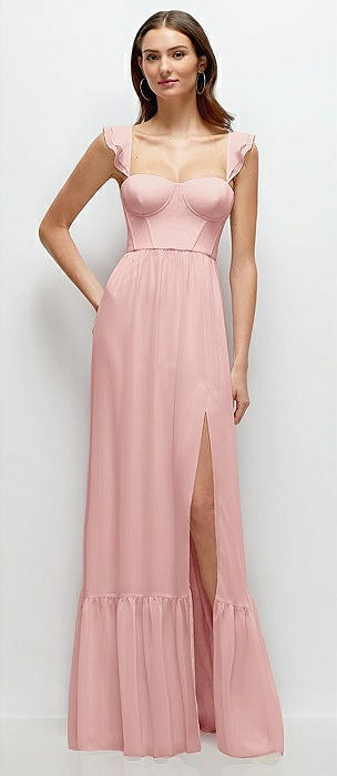 Bustier-Style Chiffon Tiered Ruffle Maxi Dress with Adjustable Straps in rose