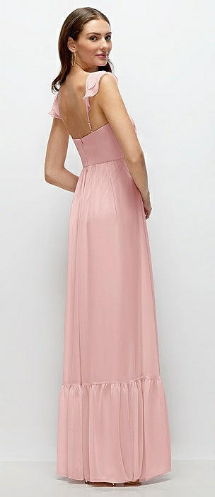 Ruffle Strap Chiffon Bustier Maxi Dress with Ruffle Hem A-Line Skirt in rose