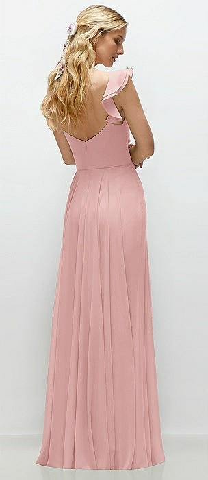 Convertible Ruffle Strap Chiffon Maxi Dress with Full Circle Skirt in rose