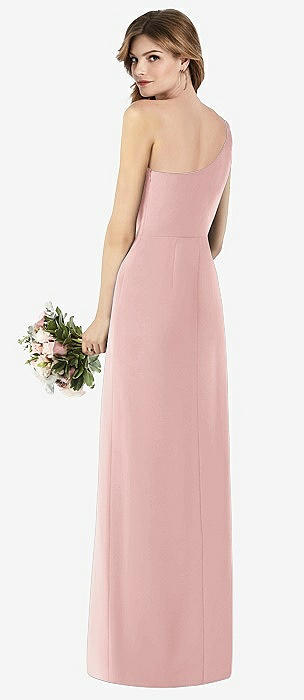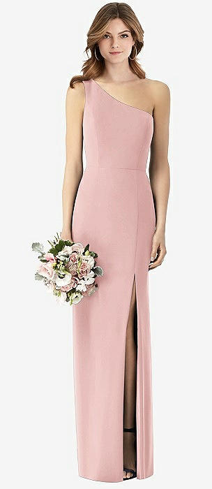 One-Shoulder Crepe Trumpet Gown with Front Slit in rose