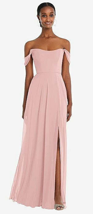 Off-the-Shoulder Draped Neckline Maxi Dress in rose
