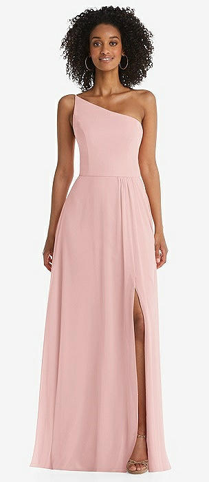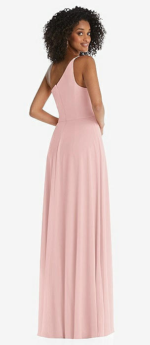 One-Shoulder Chiffon Maxi Dress with Shirred Front Slit in rose