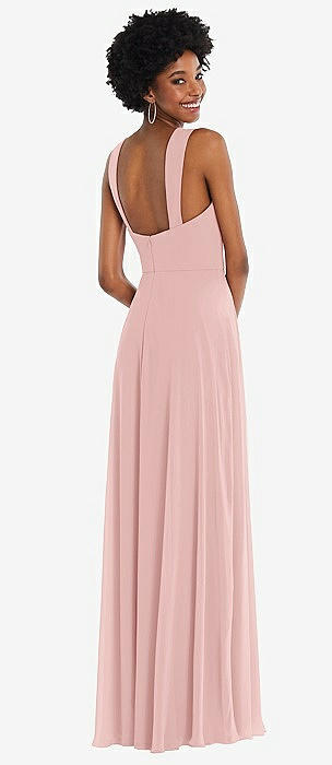 Tie-Back Cutout Trumpet Gown with Front Slit in rose