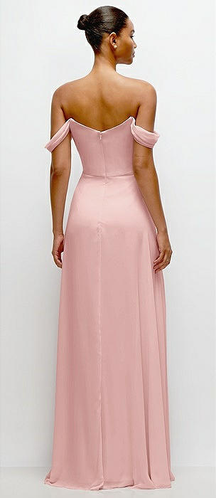 Bow-Shoulder V-Back Chiffon Gown with Front Slit in rose