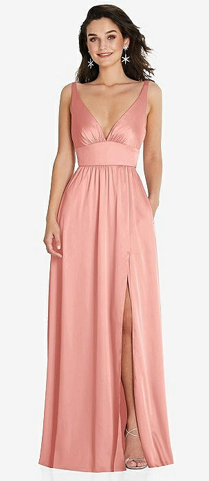 Deep V-Neck Shirred Skirt Maxi Dress with Convertible Straps in rose