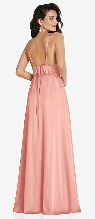 Plunge Neckline Bow Shoulder Empire Waist Chiffon Maxi Dress in rose