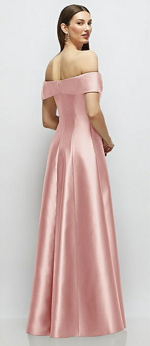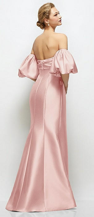 Off-the-Shoulder Bow-Back Satin Trumpet Gown in rose
