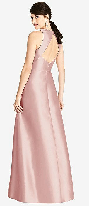 Open Neckline Cutout Satin Twill A-Line Gown with Pockets in rose