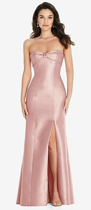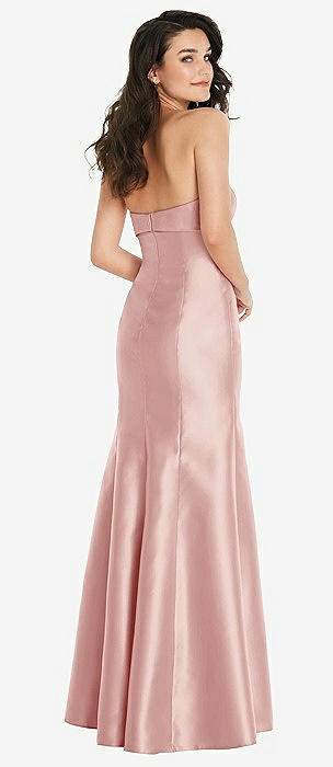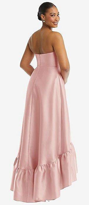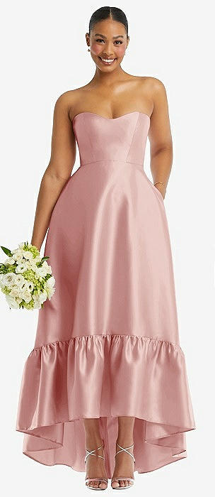 Strapless Deep Ruffle Hem Satin High Low Dress with Pockets in rose