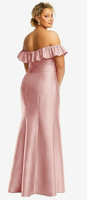 Off-the-Shoulder Ruffle Neck Satin Trumpet Gown in rose