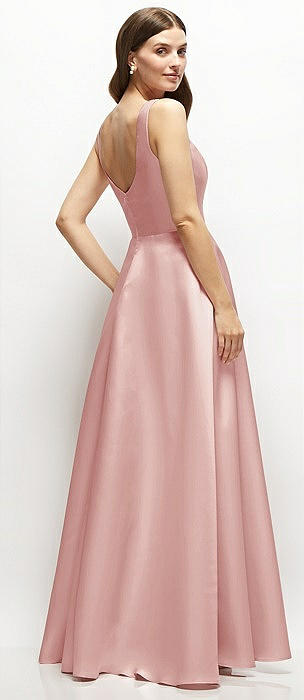 Square-Neck Satin Maxi Dress with Full Skirt in rose