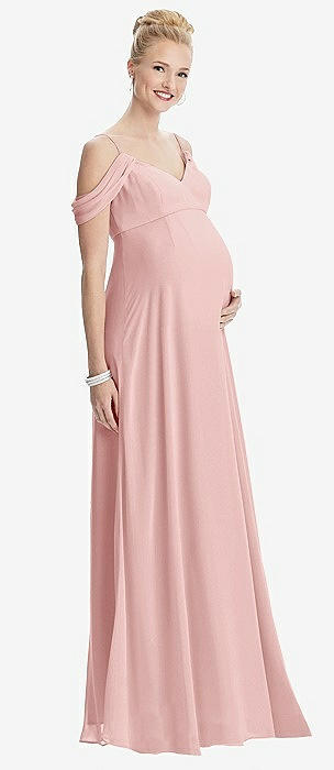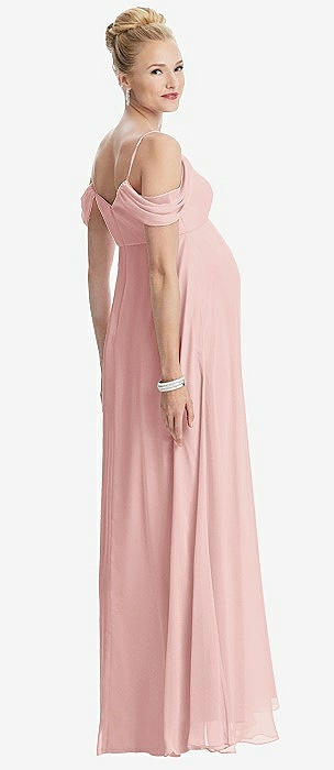 Draped Cold-Shoulder Chiffon Maternity Dress in rose