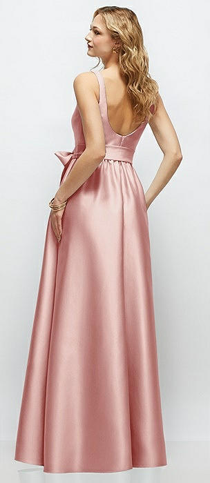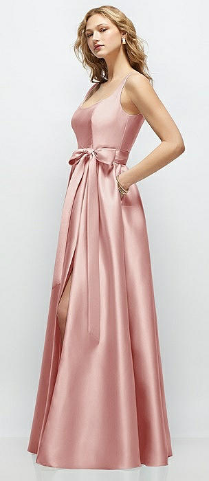 Scoop Neck Drop Basque Skirt Satin Maxi Dress with Pockets in rose