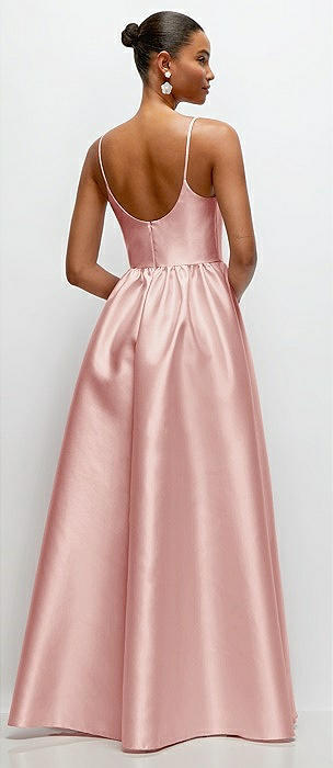 Scoop Neck Drop Basque Skirt Satin Maxi Dress with Pockets in rose