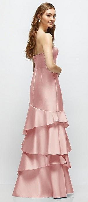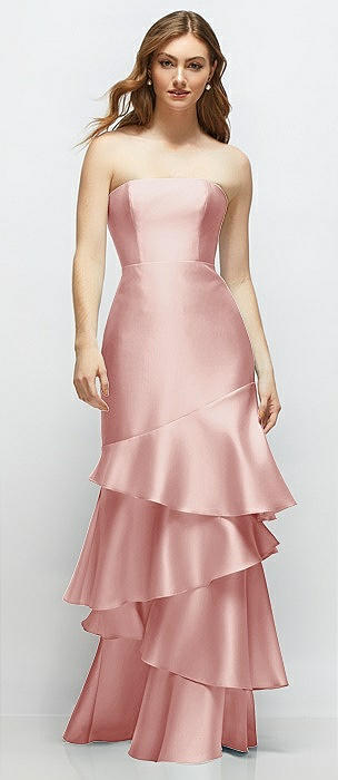 Strapless Bodycon Maxi Dress with Tiered Ruffle Skirt in rose