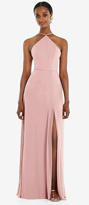 Diamond Halter Maxi Dress with Adjustable Straps in rose