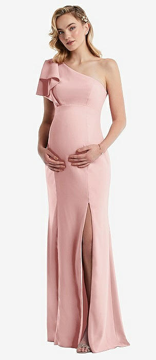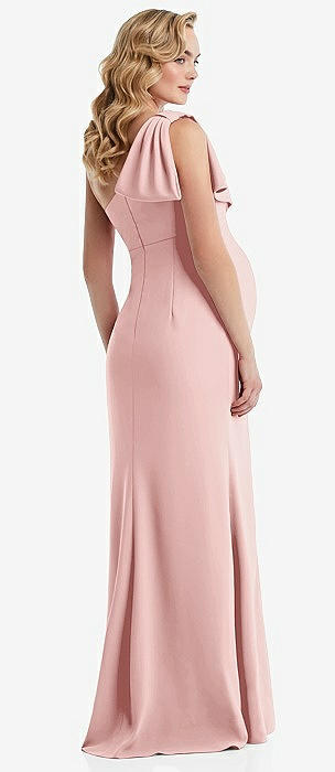 One-Shoulder Ruffle Sleeve Maternity Trumpet Gown in rose