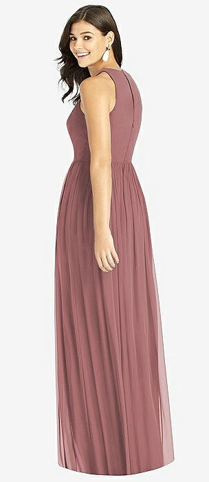 Shirred Skirt Jewel Neck Halter Dress with Front Slit