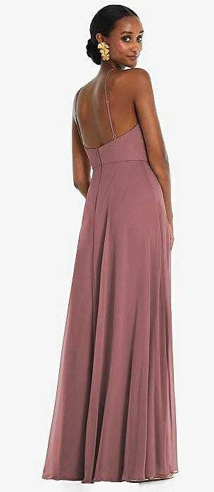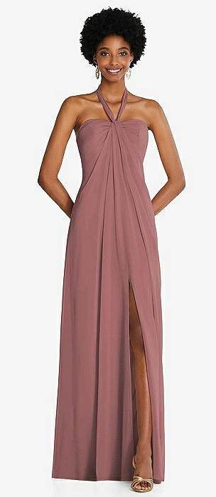 Draped Chiffon Grecian Column Gown with Convertible Straps in rosewood