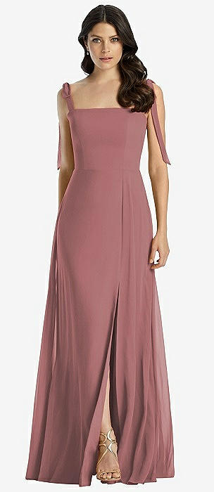 Tie-Shoulder Chiffon Maxi Dress with Front Slit in rosewood