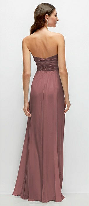 Strapless Pleated Surplice Chiffon Maxi Dress with A-Line Skirt in rosewood