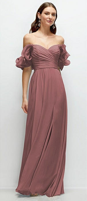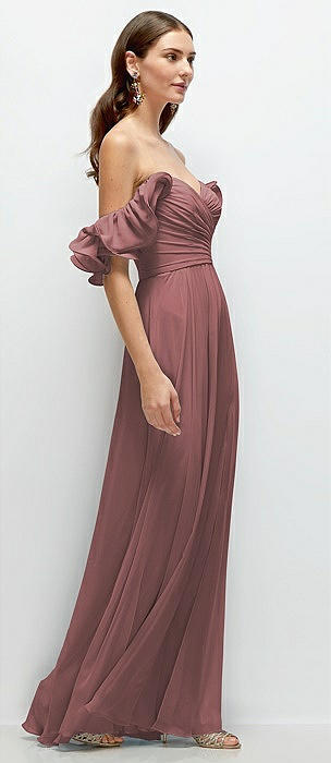 Off-the-Shoulder Basque Neck Maxi Dress with Flounce Sleeves in rosewood