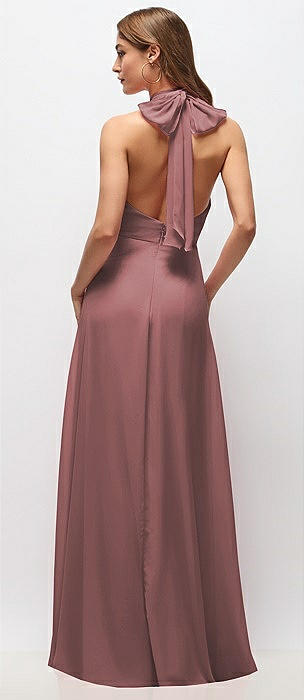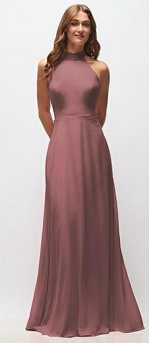 High Neck Halter Backless Maxi Dress in rosewood