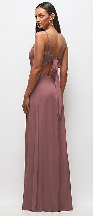 Cowl Neck Chiffon Maxi Dress with Hand-Worked Petal Straps in rosewood