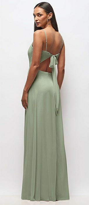 Plunge Halter Open-Back Maxi Bias Dress with Low Tie Back in sage