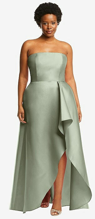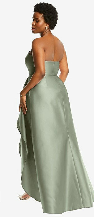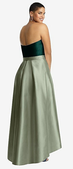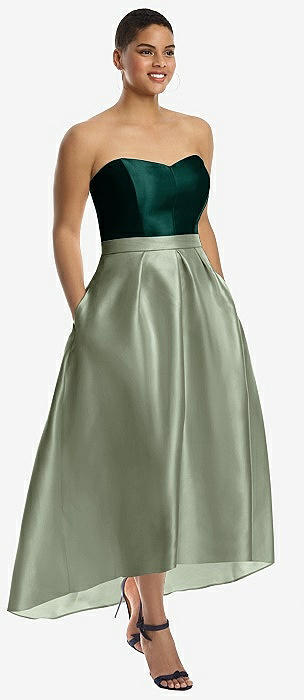 Strapless Satin High Low Dress with Pockets in sage
