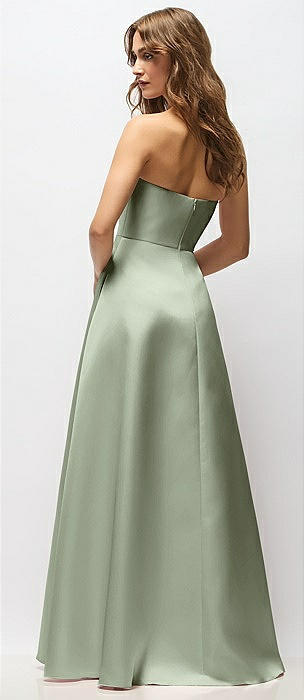 Strapless A-line Satin Gown with Modern Bow Detail in sage