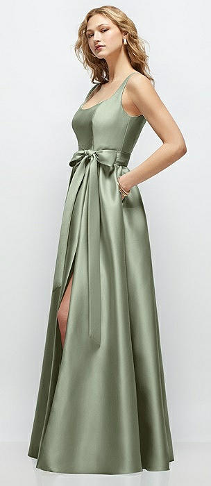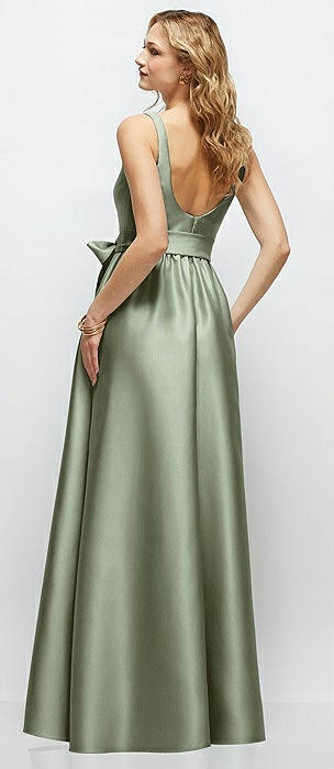 Open Neckline Cutout Satin Twill A-Line Gown with Pockets in sage