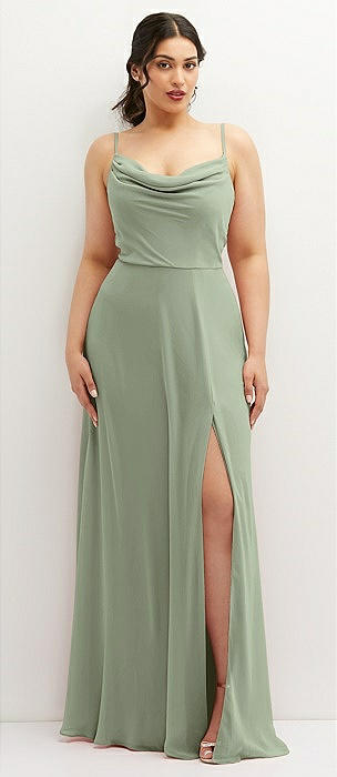 Soft Cowl-Neck A-Line Maxi Dress with Adjustable Straps in sage