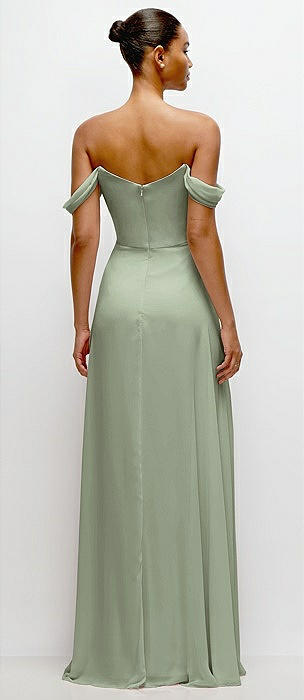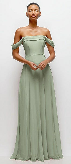 Off-the-Shoulder Draped Chiffon Maxi Dress in sage
