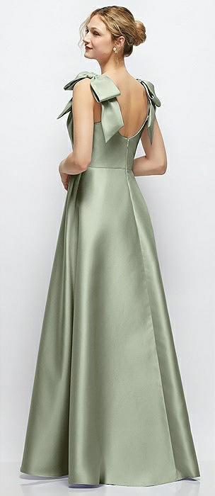 Satin Fit and Flare Maxi Dress with Shoulder Bows in sage